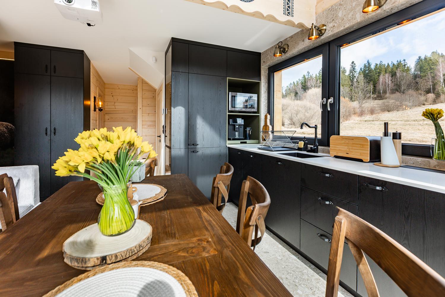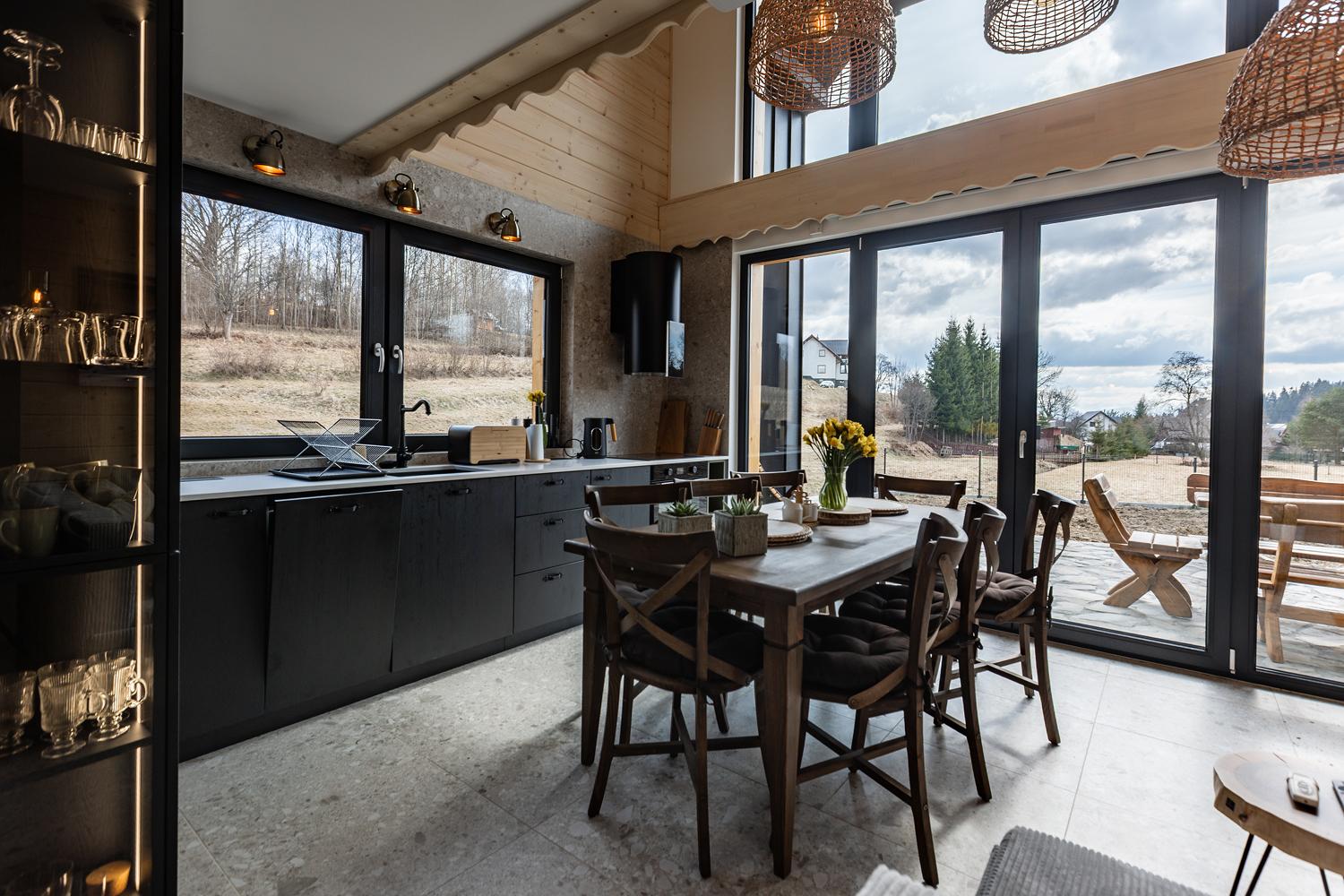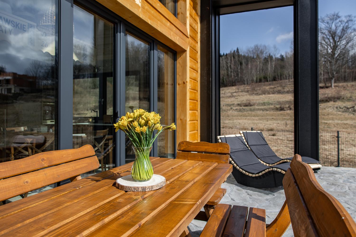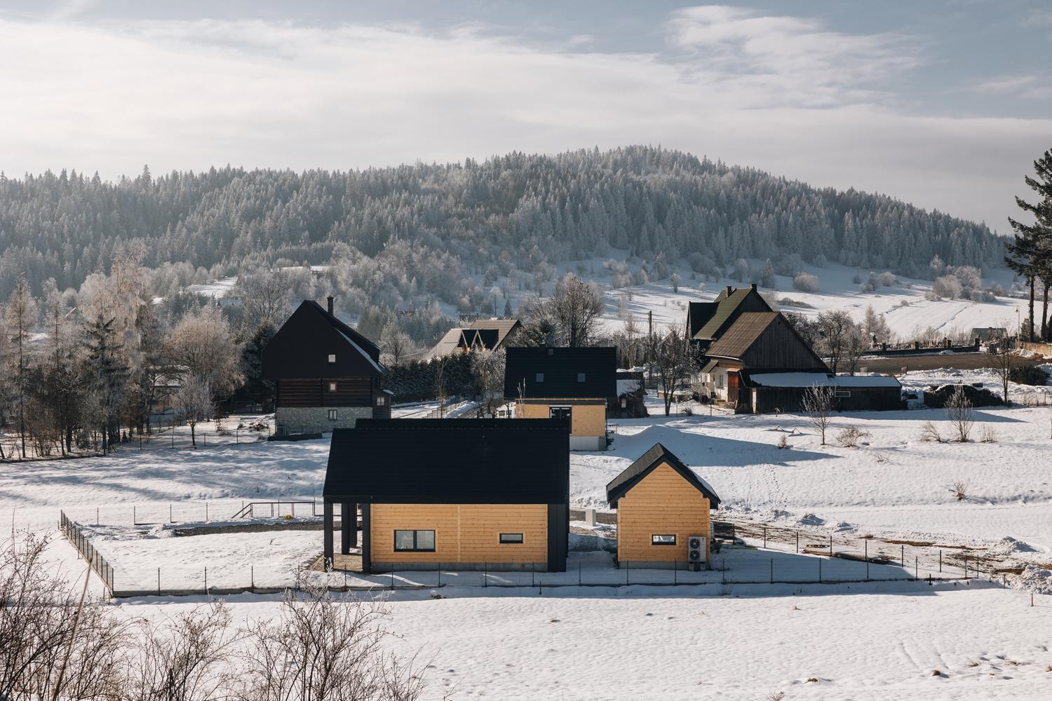 Nasze domki zbudowaliśmy na samym skraju lasu, by umożliwić Wam to, za czym sami tęsknimy w miejskim biegu: poranną kawę z widokiem na góry, zapach świerków tuż za progiem i wieczory przy trzaskającym ogniu w kominku.
